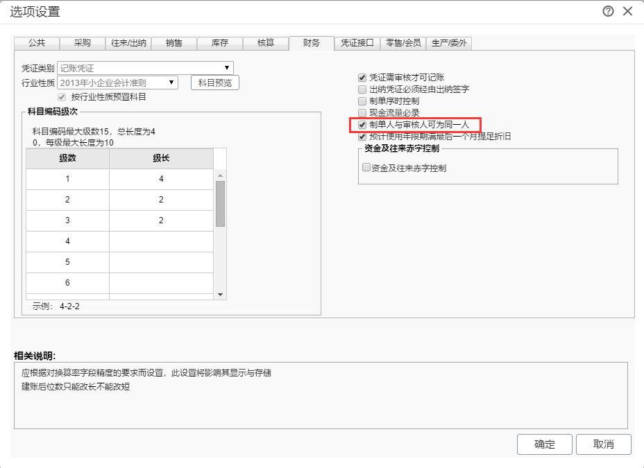 原来,关键操作是要勾选>制单人与审核人可以为同一人<