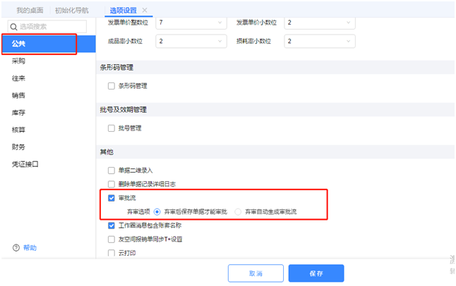 1.系统管理-选项设置-公共,勾选其他中的审批流。