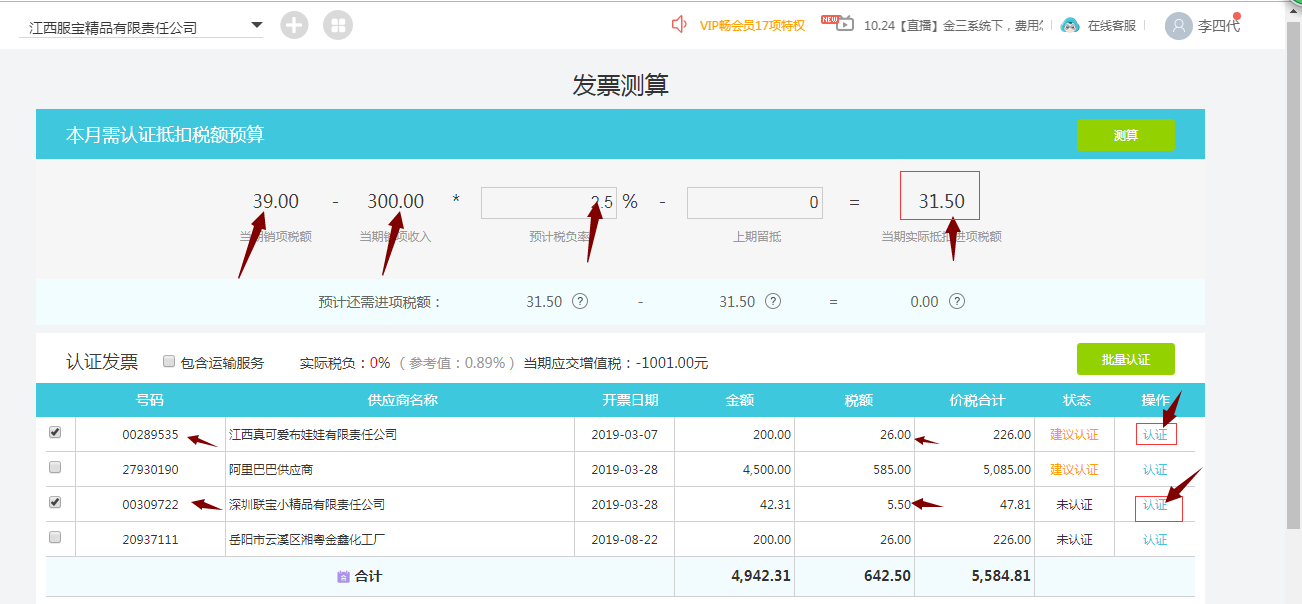 好会计/易代账可自动测算当期最佳抵扣进项税额。