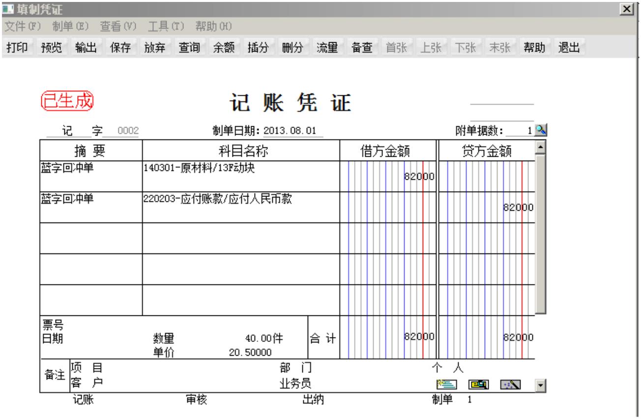 11、红冲单生成凭证