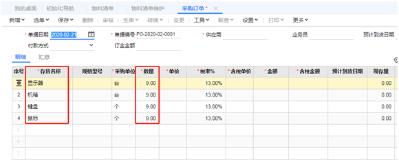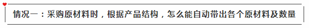 1)采购原材料时,根据产品结构,怎么能自动带出各个原材料及数量?