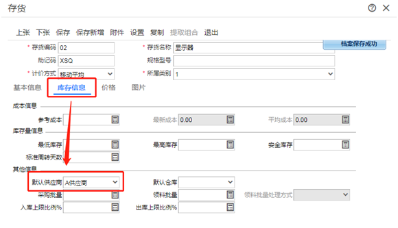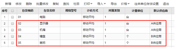 其他存货也按相同的方法设置好默认供应商;