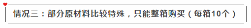 3)部分原材料比较特殊,只能整箱购买(每箱10个)
