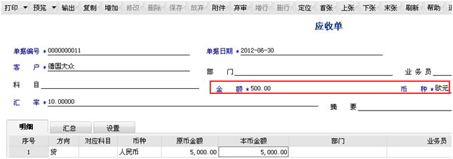 应收选项中改成外币结清。