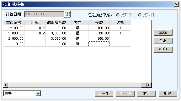下面看一下分别选择外币结清和月末处理结转汇兑损益有什么不同: