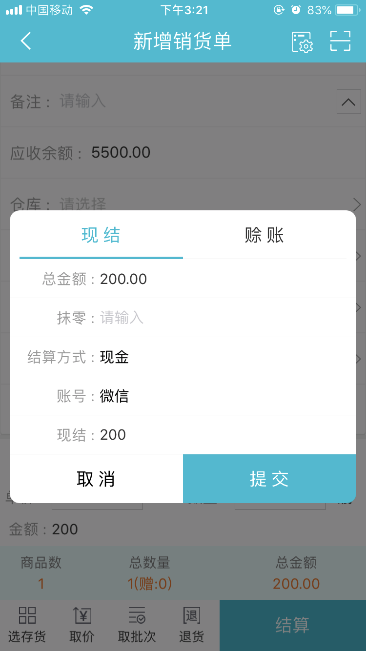 当业务员把货卖出,但没收到款时,在工作圈T+下单中填制一张销货单,并且选择“赊账”