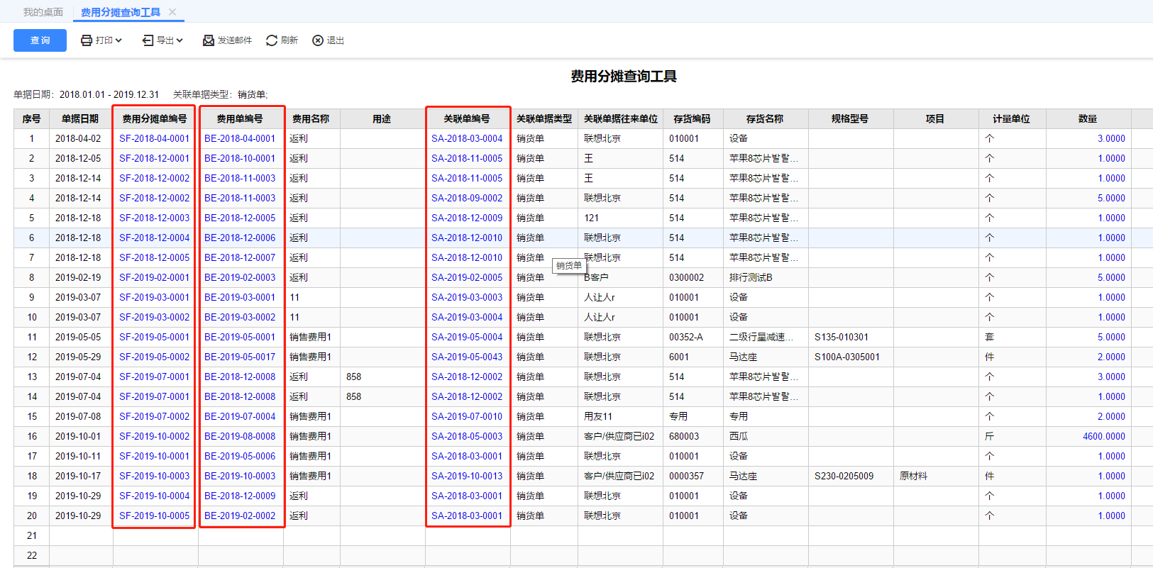 企业费用多,费用单分摊后想去修改,要找到费用分摊单删除后才能修改费用单或销货单,大费周章查询任然无法理清分摊对象,如何快速查询所有费用单的分摊金额和分摊情况困扰不少小伙伴。T+cloud费用分摊查询工具,让费用单,费用分摊单和分摊关联单据间的关联关系一目了然,减少频繁联查操作,费用分摊情况核查汇总更方便。还可以按费用单号关联单号等方式查询分摊关系,也支持按存货明细展开查询哦。