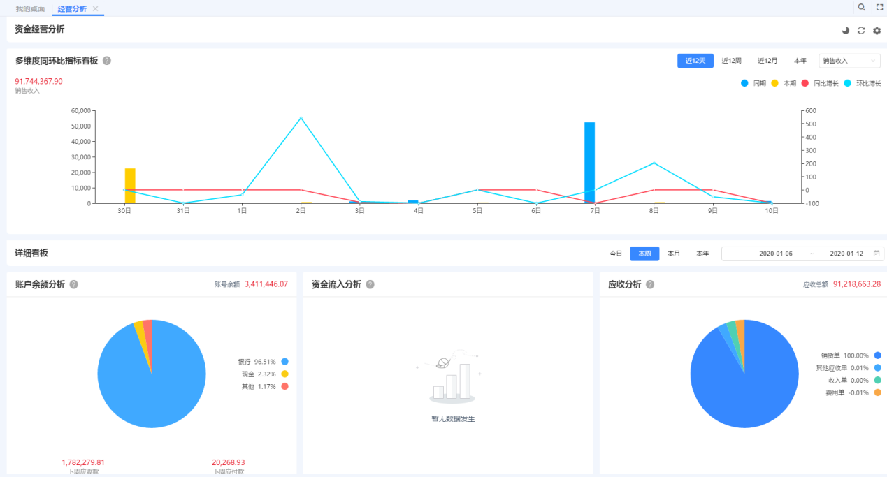 不少企业财务人被基础财务核算工作占用大量时间,后续还要导出各种数据,一一筛选梳理,做企业经营数据分析,效率低,数据滞后。T+Cloud/专属云经营分析根据企业实际情况和数据的运算结果,及时为企业财务人员和管理者提供图文并茂的管理分析报告,给出改进建议;提前预防管控漏洞,在其进行决策提供指导依据,让每个决策都有数据支撑,并支持层层追溯与分享。还支持手机端查看经营数据哦。