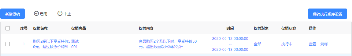 启用好后再促销方案中可以看到促销状态显示执行中