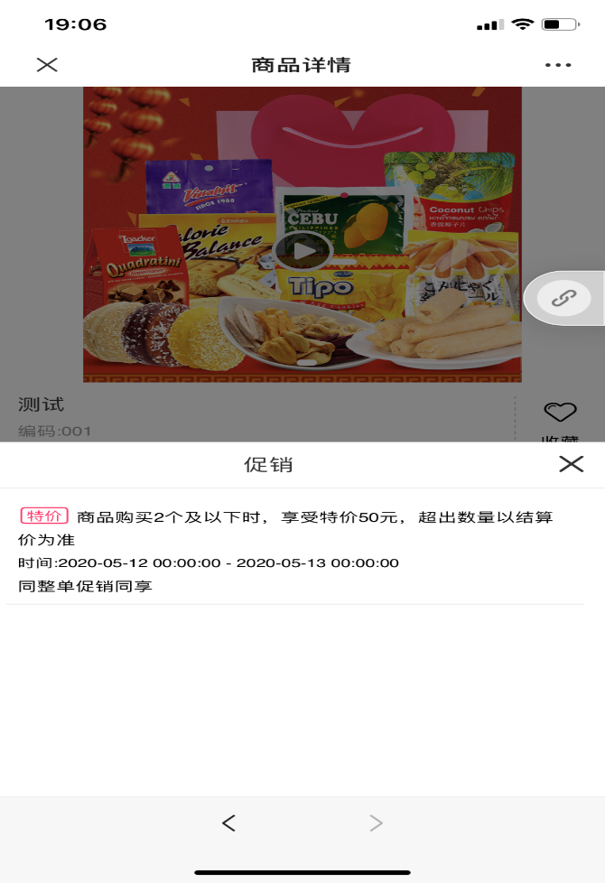 二、使用手机端登录订货商城可以发现该存货上显示了特价50元,原价80元,点击进去后查看详情显示了促销名称、促销时间。