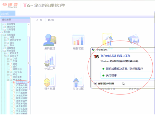 T6点击核算相关单据查询、采购增加部分单据等操作都会引发。初步确认是微软系统进行了更新,导致部分dll文件的组件内容出现了变化,出现T6报错。