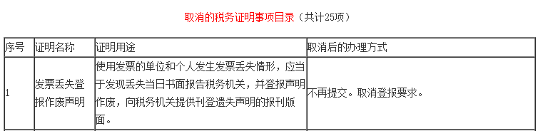 根据《国家税务总局关于公布取消一批税务证明事项以及废止和修改部分规章规范性文件的决定》(国家税务总局令第48号)附件1《取消的税务证明事项目录》第一条,自2019年7月24日起,发票丢失登报作废声明不再提交,取消登报声明。