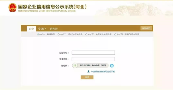 互联网登陆网址 http://www.gsxt.gov.cn/index.html为了顺利进行信息填报,推荐使用【IE8及以上】、【火狐Firefox】、【谷歌Chrome】浏览器。)(以下以河北省为例)