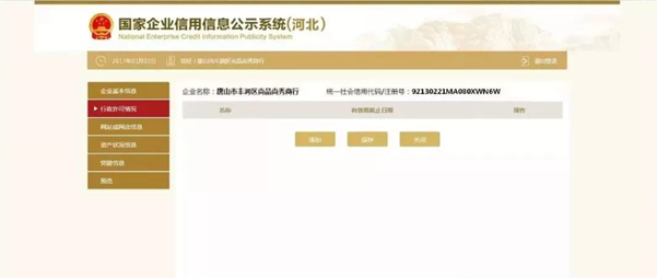 取得行政许可的,点击“添加”按钮添加行政许可信息,添加完成后点击“保存”;如果您的经营项目不需要取得行政许可,请直接点击“保存”。
