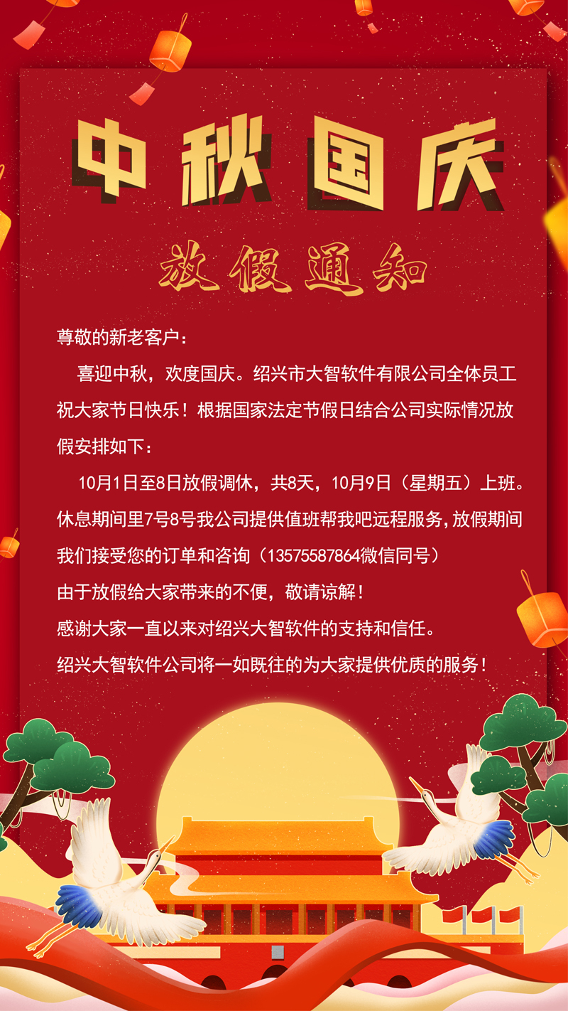 2020年中秋国庆放假通知