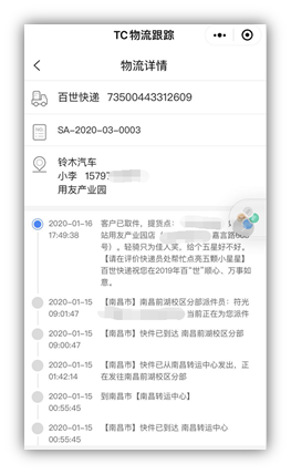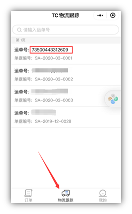 三.再看客户如何通过微信小程序查物流信息: