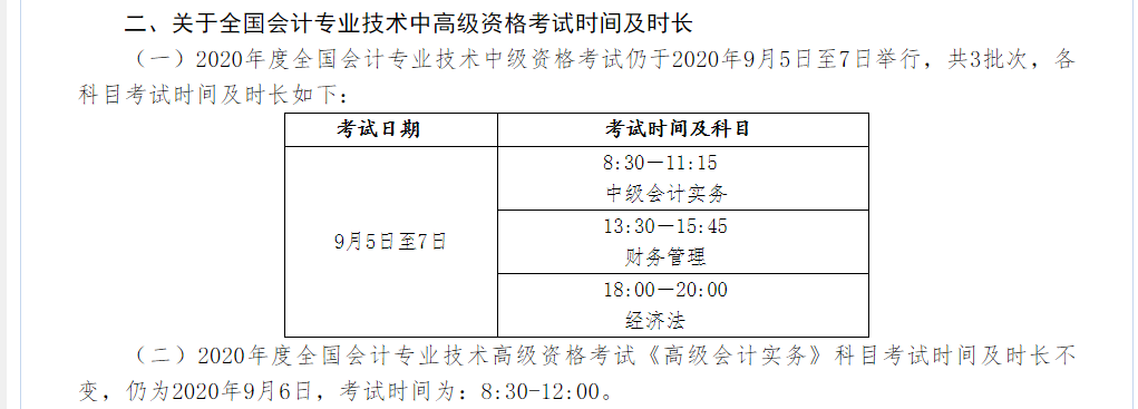 中级考试时间缩减