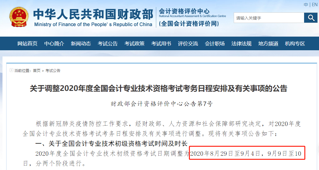 【财税】初级考试延期时间确定!中级会计考试如期举行!