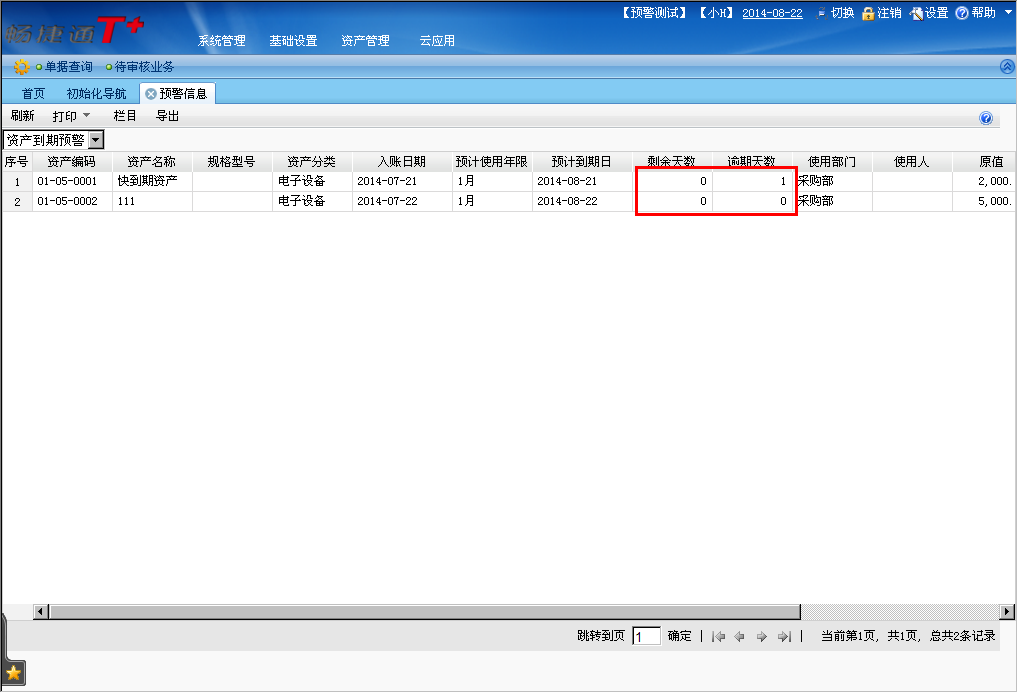 资产到期预警功能在软件中怎么运用?