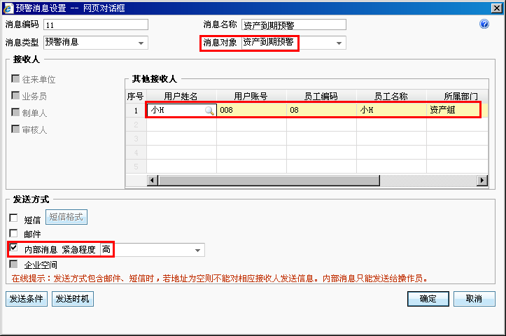 2、“系统管理”—“消息中心”—“预警消息设置”增加“资产到期预警”