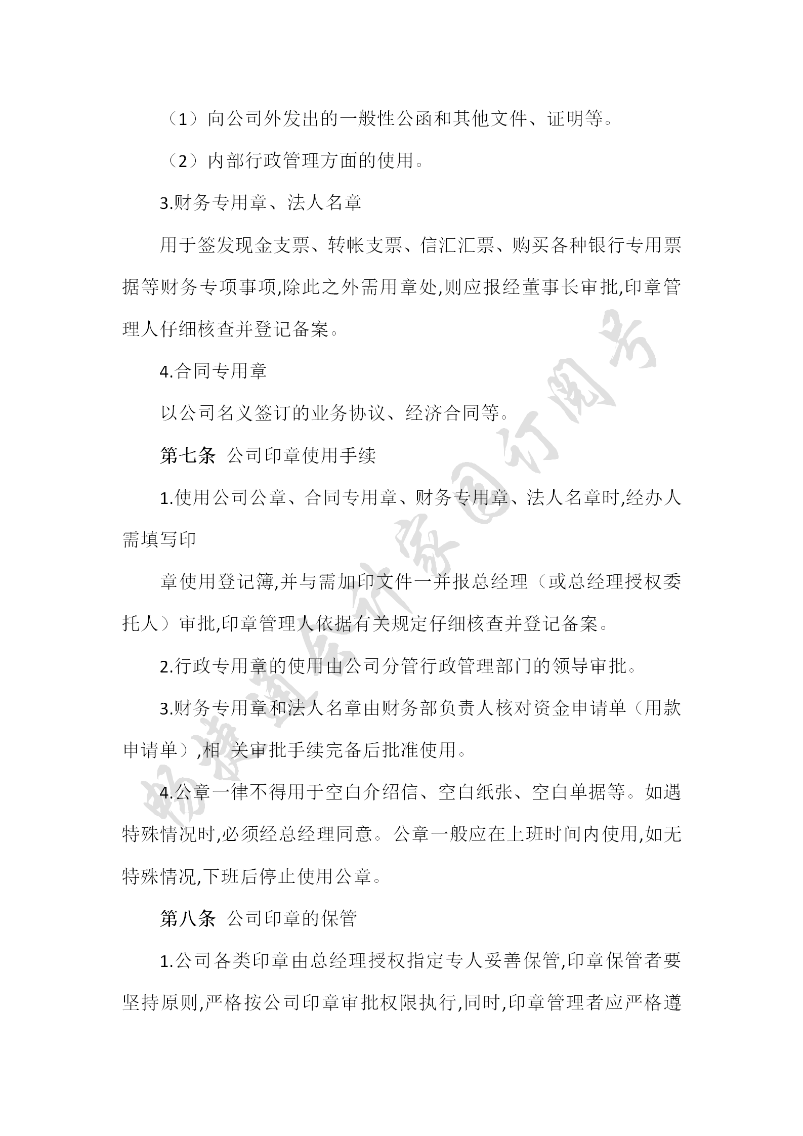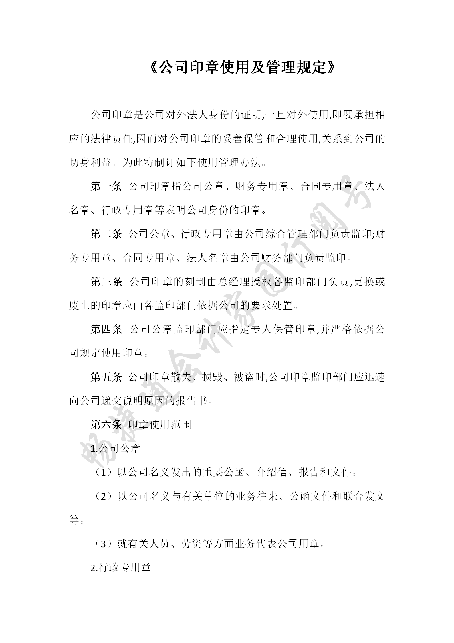 使用范围:凡是以公司名义发出的信函、公文、合同、介绍信、证明或其他公司材料均可使用公章。