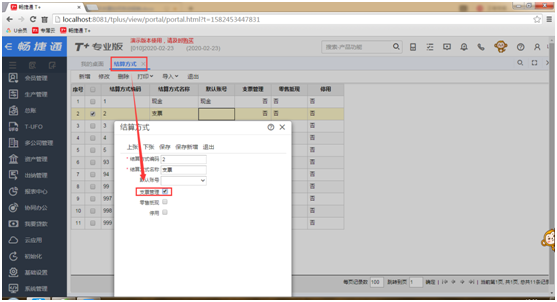2.打开【基础设置】-【收付结算】下点击【结算方式】,新增结算方式勾选【支票管理】;