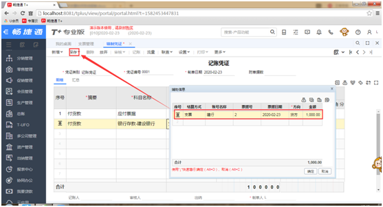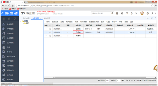 T+软件是支持支票自动核销的,且自动报销分为两种方式:1、在现金银行日记账中自动报销,2、填制凭证时自动报销。