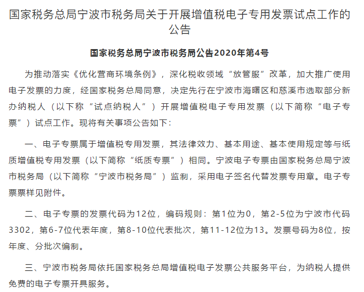但是随着经济的发展,不仅电子发票越来越普遍,电子专用发票在宁波也开始试点了。