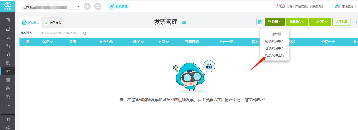 将电子发票的PDF文件直接上传,如下图所示: